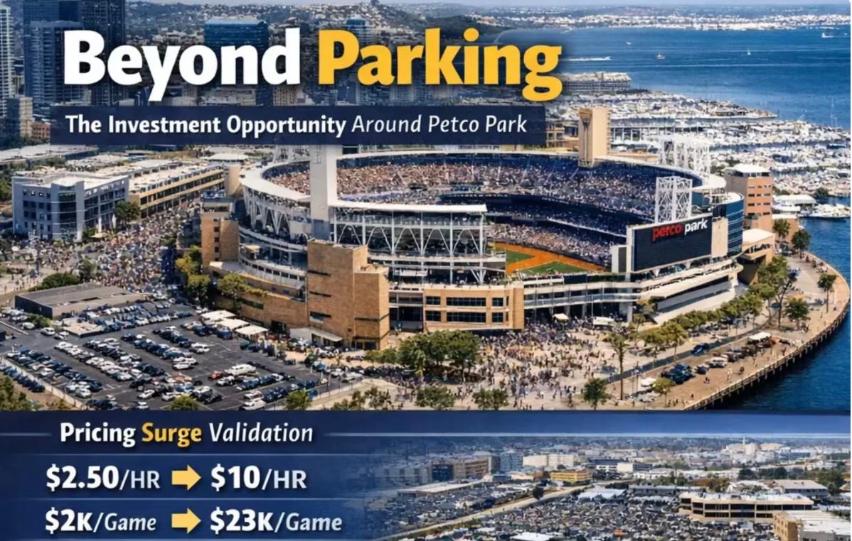 The story unfolding around Petco Park is not fundamentally about parking. It is about pricing power, supply constraints, and the monetization of overlooked real estate assets in dense urban environments.